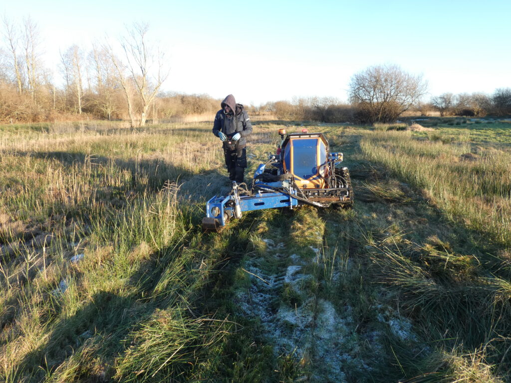 Februar 2025. Die Binsenbekämpfung nimmt volle fahrt auf. Der Boden ist gefroren das erlaubt für kurze Zeit die Binsenbekämpfung.
