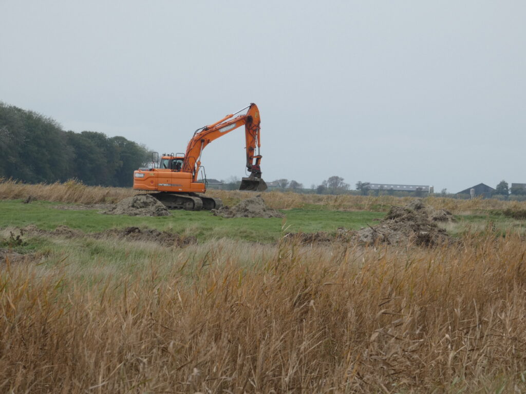Oktober 2025. Kleine genehmigungsfreie Vernässungsmaßmahmen in unseren Flächen 1,4,9,54 und 71. Hier wird das Aushubmaterial der Seitengräben, dass uns die Gemeinde “ beschert “ hat so verbracht, dass anschliessend wasserbindende Bereichen entstehen.